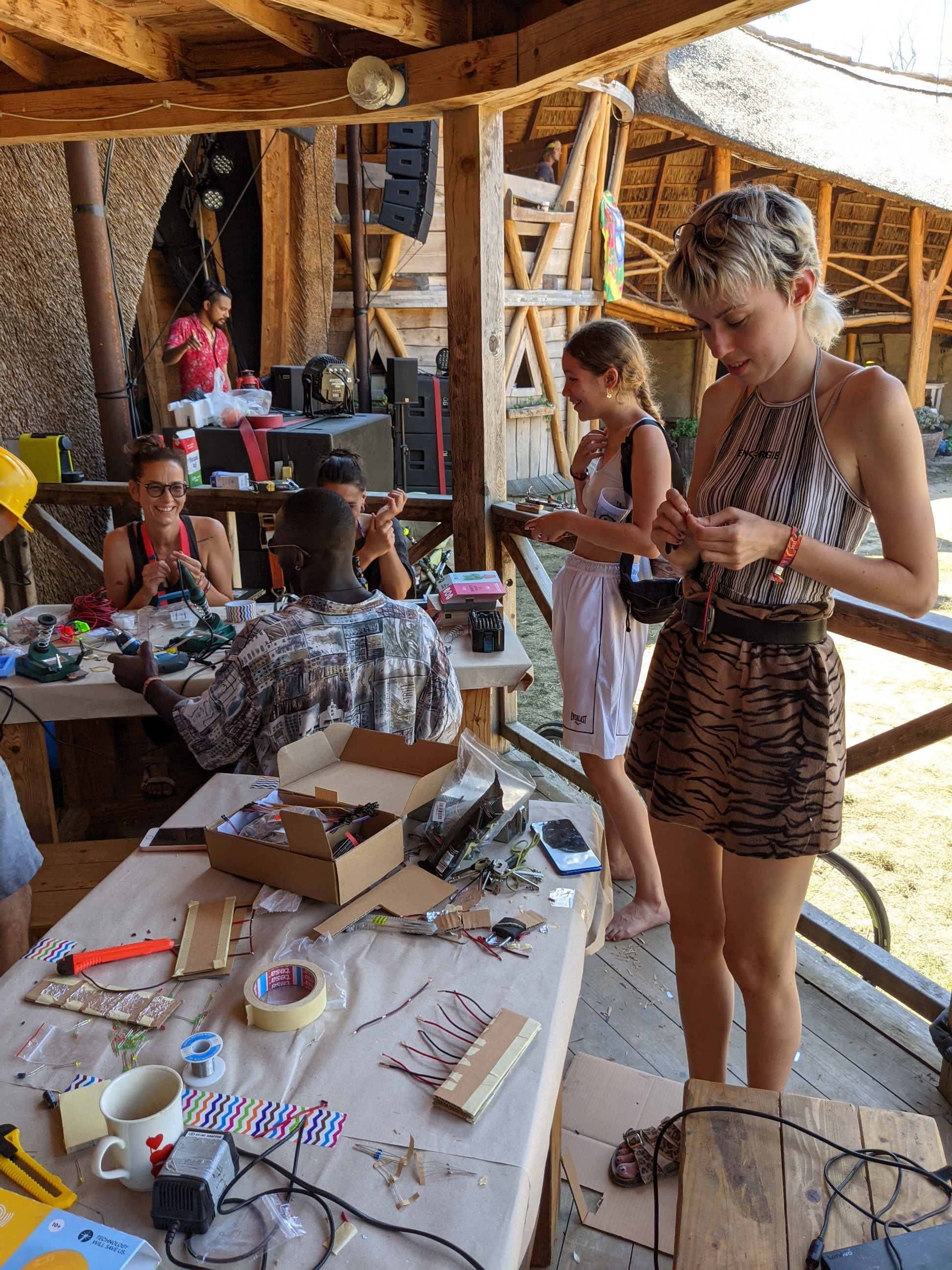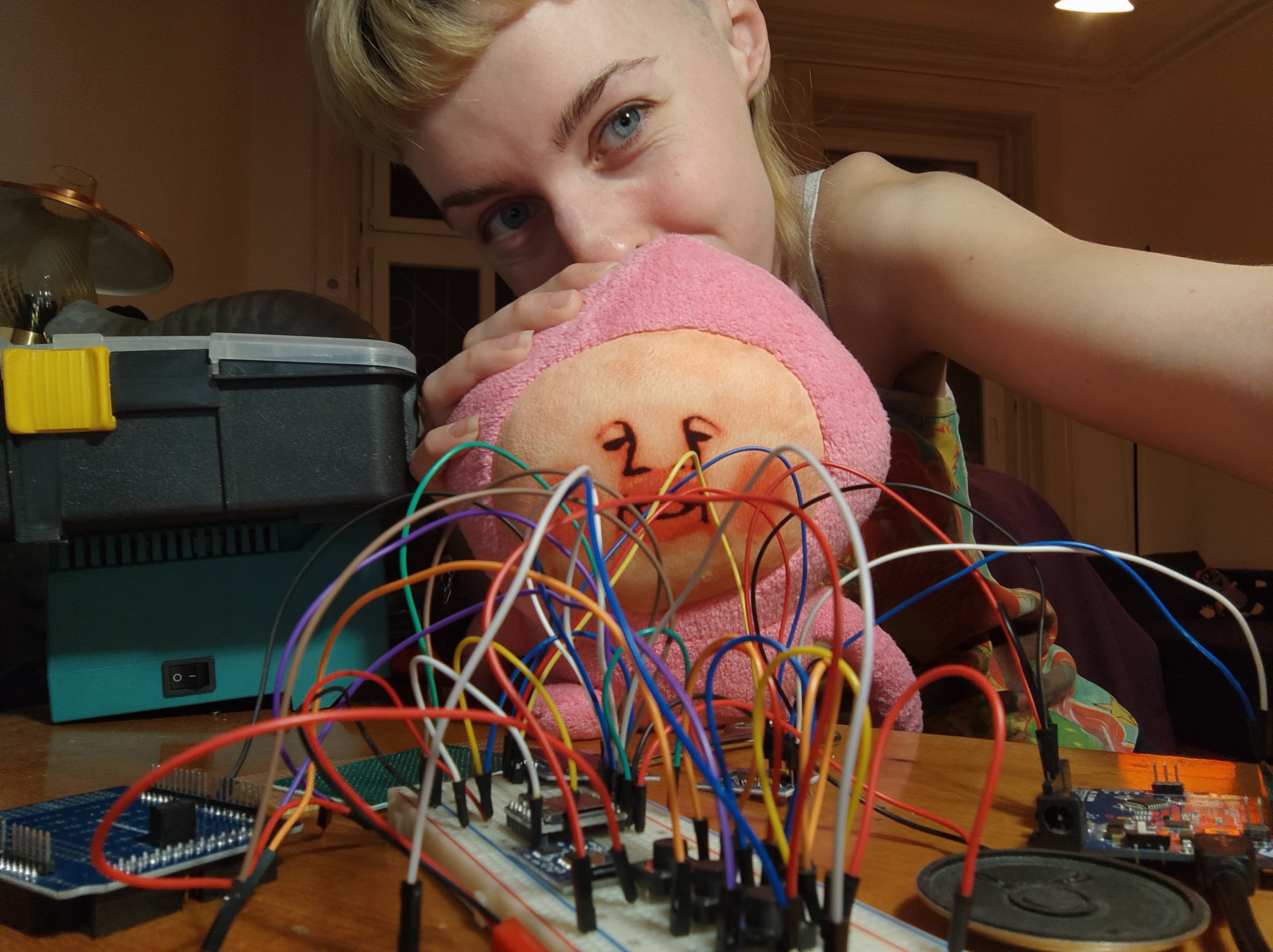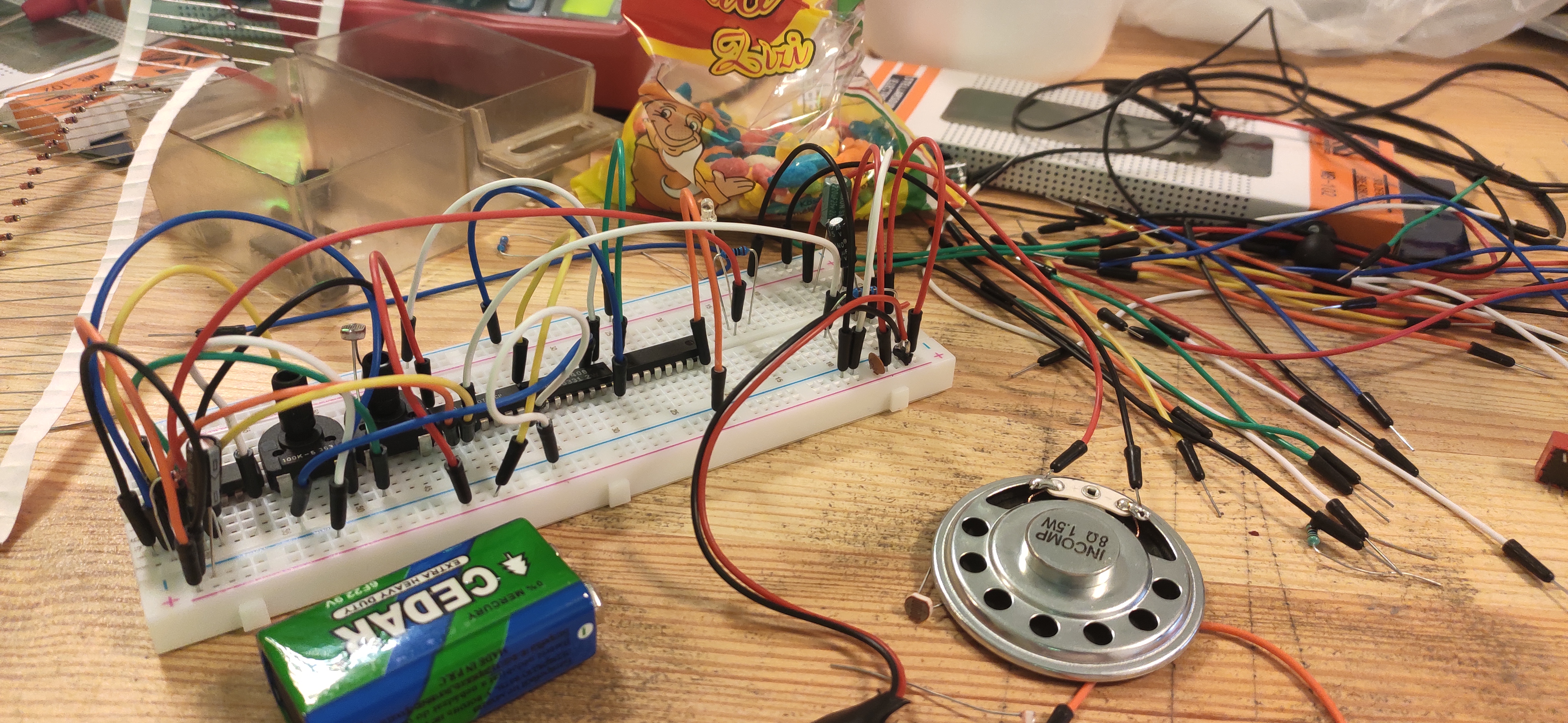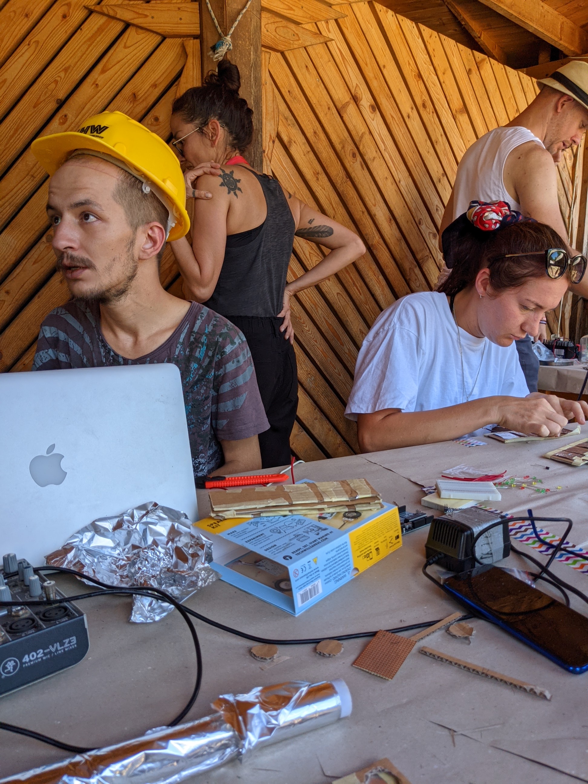 to be part of the crew with whom we have organised the Sound Hacking workshop at daad festival. The 4-day long event consisted of teaching visitors electronics basics and developing different kind of small instruments from scratch. To name a few: we had sunlight powered snythetisers, touch-based keyboards and freakish max patches connected to natural materials found around.