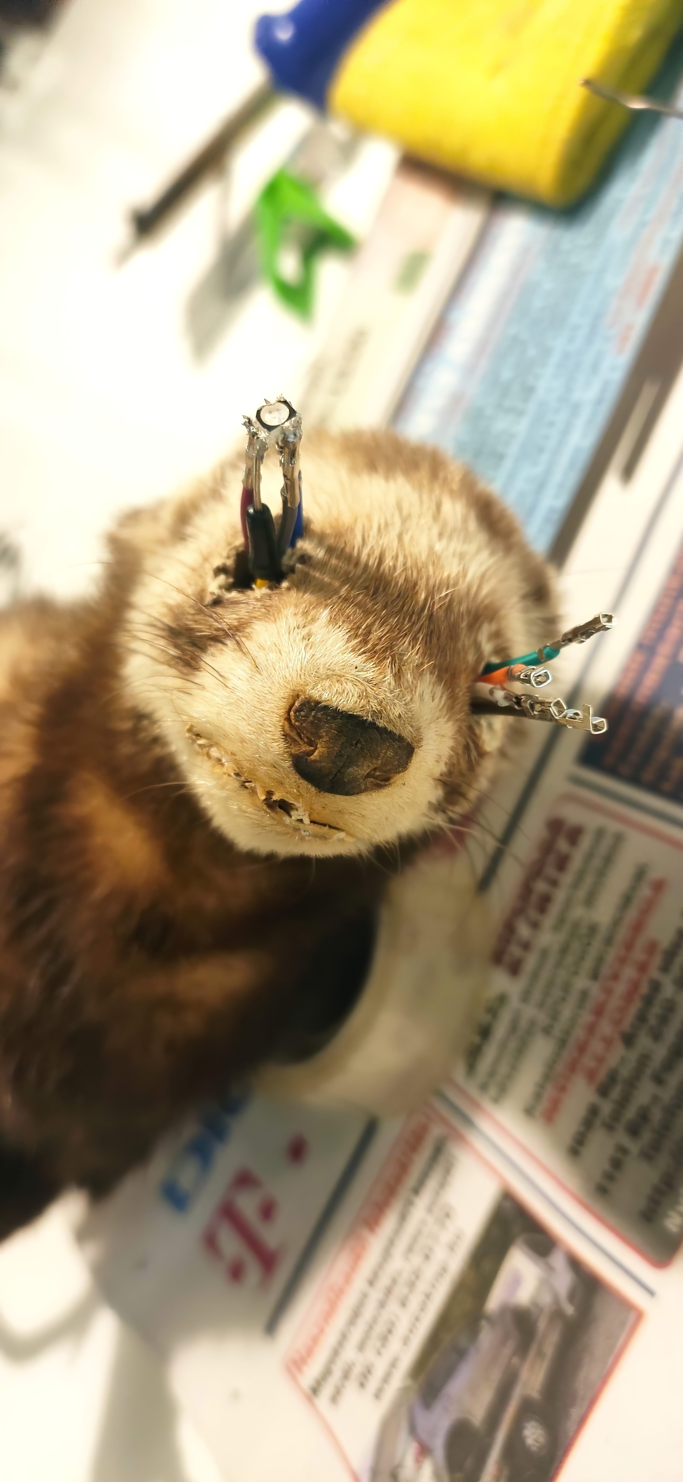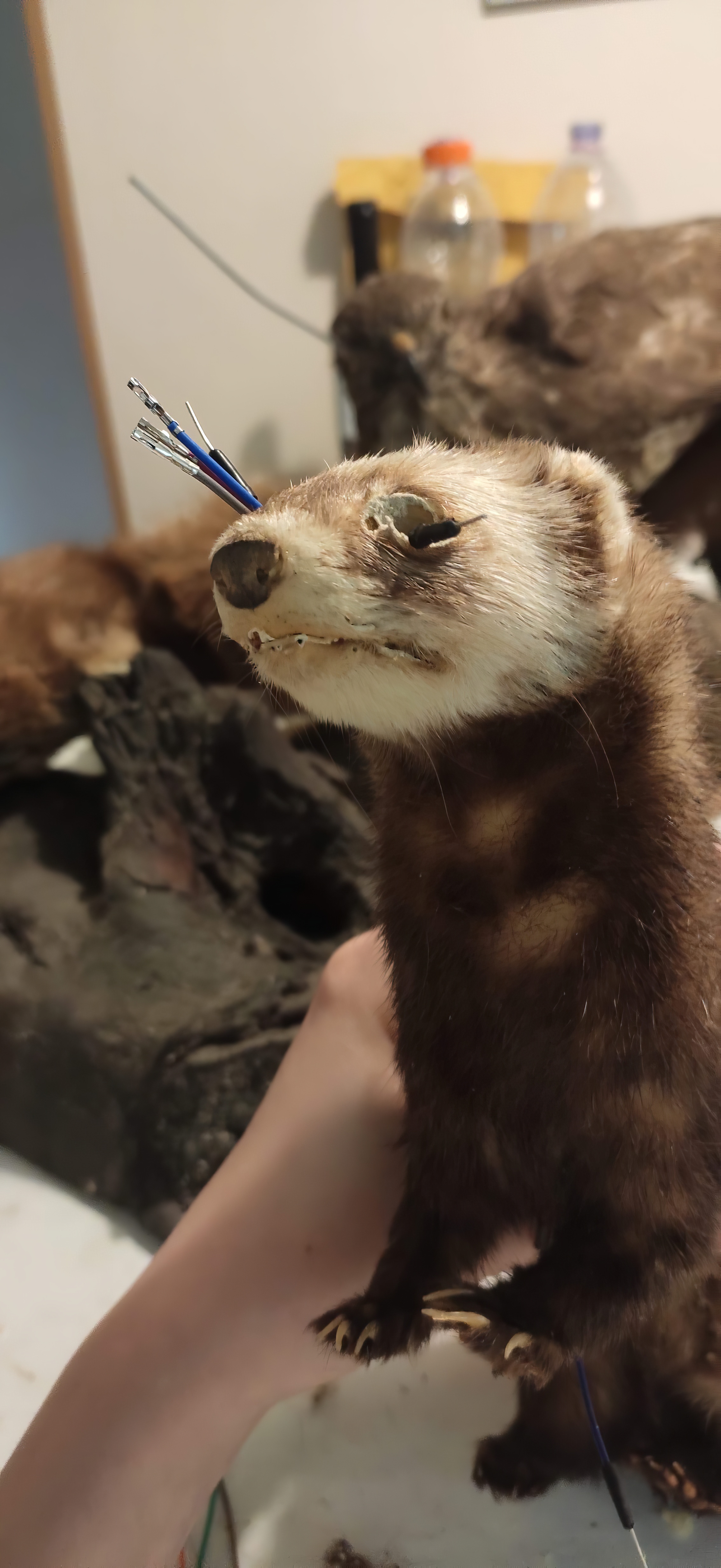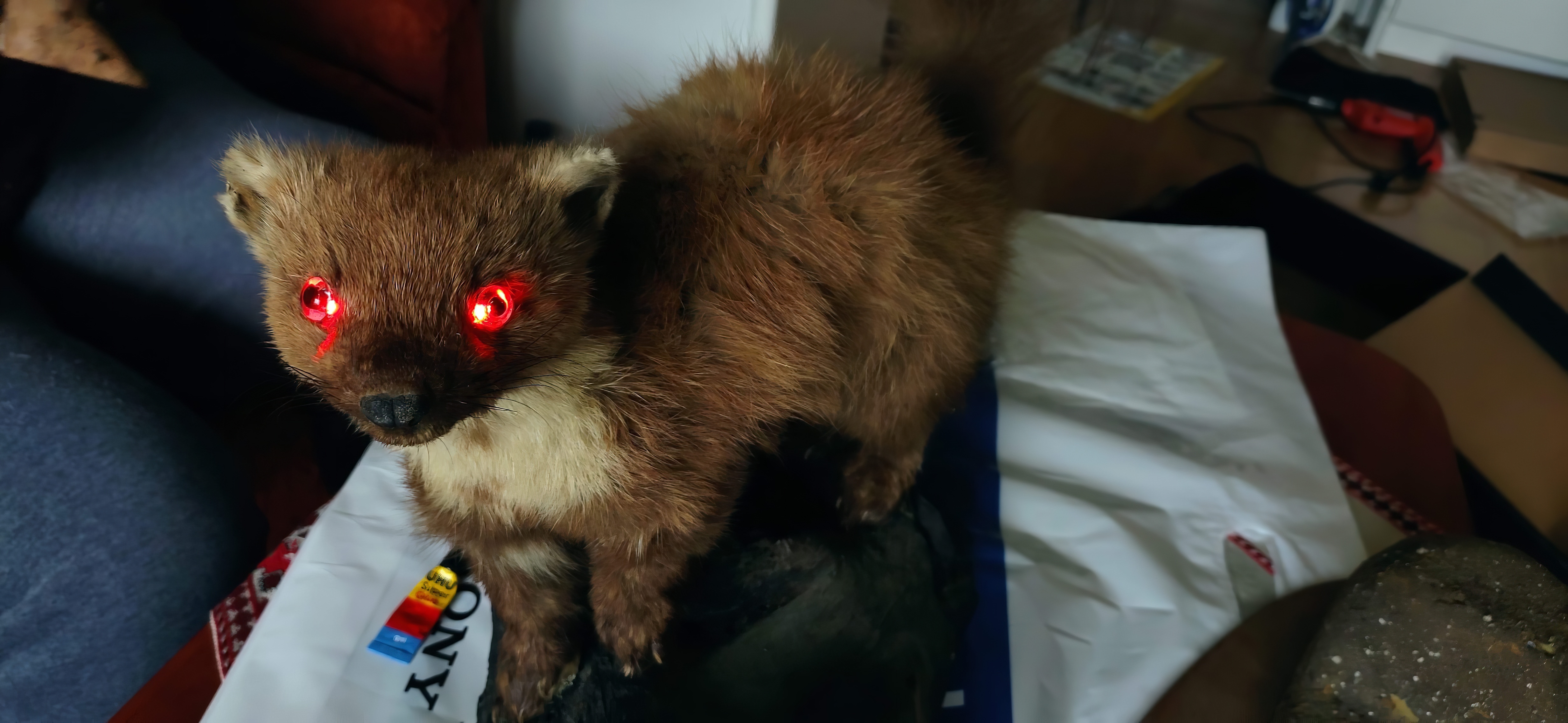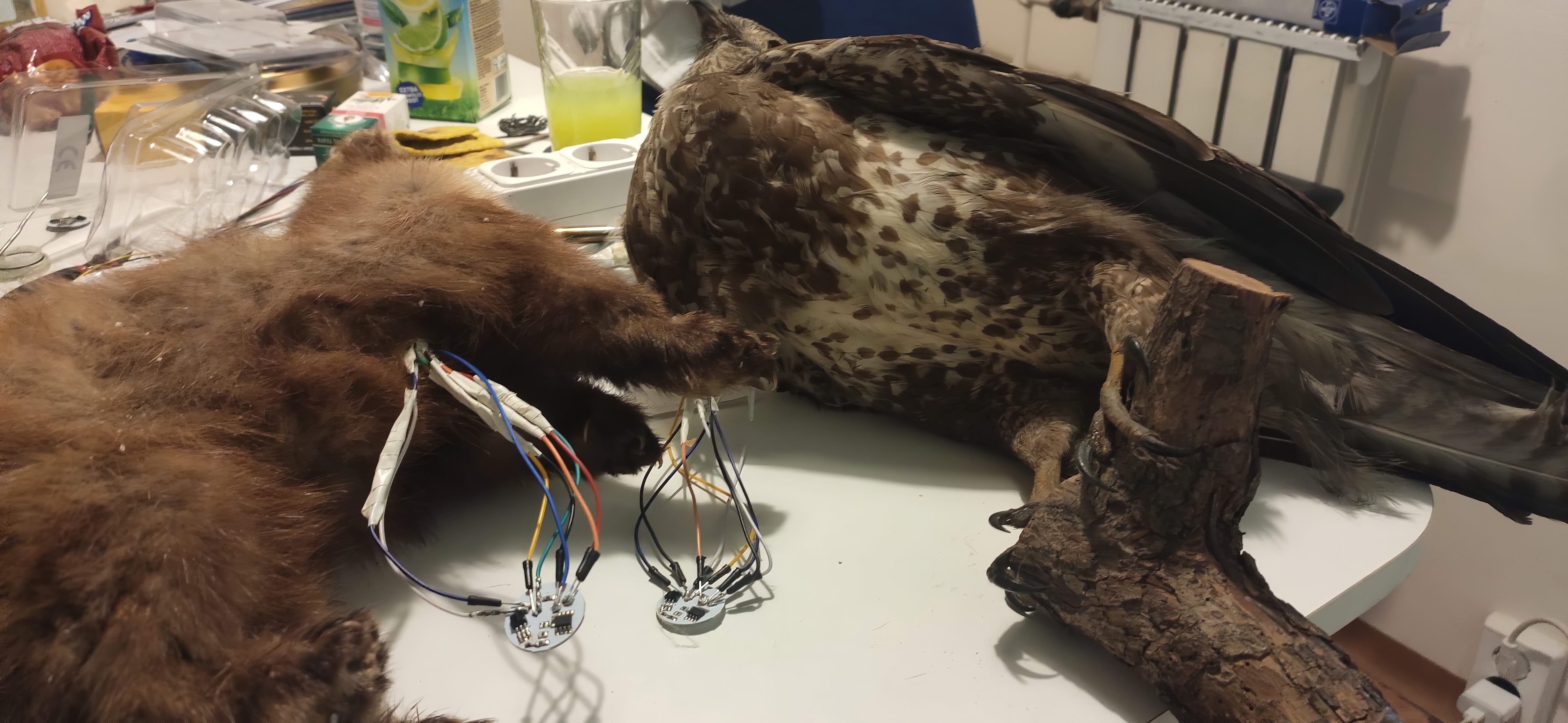 Mundruczó’s new act in Berlin. It wasn’t my first time in the theatre world as I’ve worked for many months as a prop person in the biggest hungarian contemporary theatre - Trafó, however the first meeting with the stuffed animals frozen in time was more than shocking. The task consisted of coming up with an idea for a movement-sensor triggered light installation - inside of their eyes. Holes needed to be drilled into their body where their dust soul poured out. I accepted the task with a slight delay - and devoted myself to give a new meaning to their death. The Arduino controlled animal kingdom travelled all across Europe.